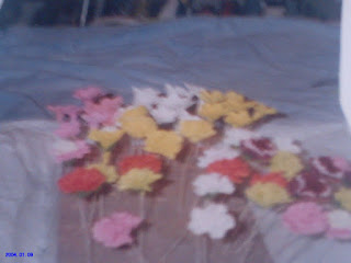 The cake side was decorated with piped pink extensions , sugar ribbons insertions and light green garlands.The top of the extensions was trimmed with piped white sugar lace pieces.